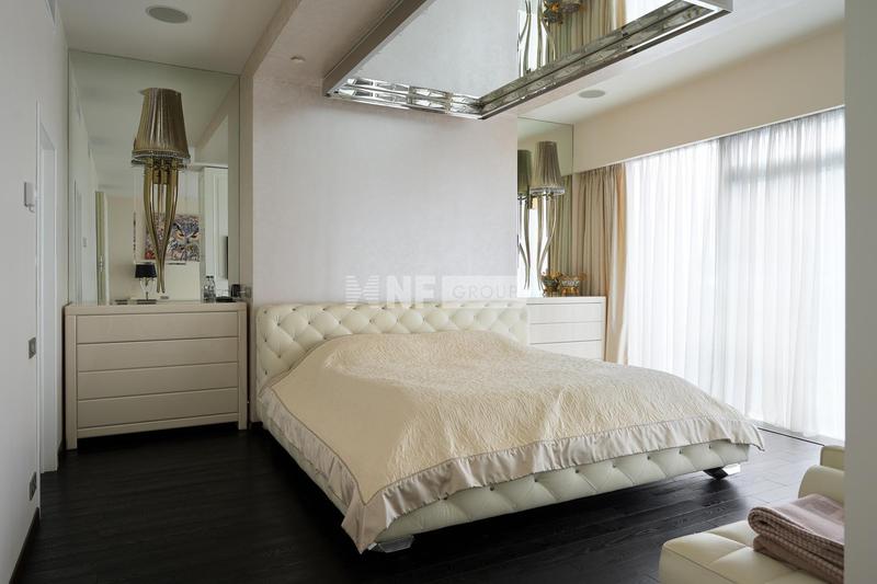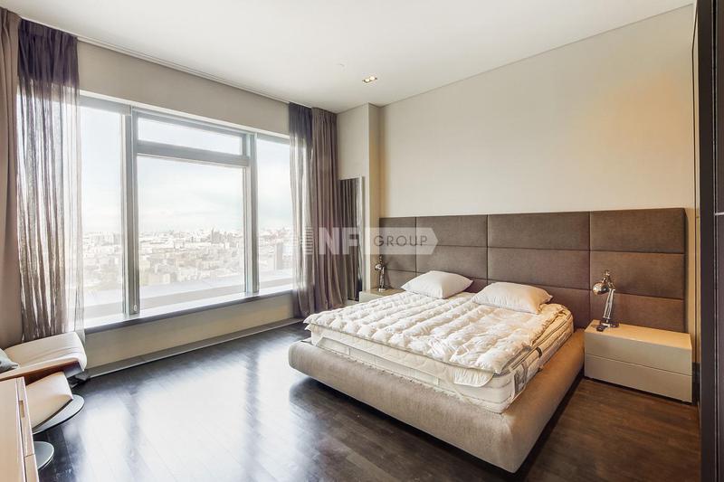 В продаже апартамент с видом на Кремль и Лужники в башне «Санкт-Петербург» комплекса «Город Столиц» в ММДЦ «Москва-Сити». Планировка: гостиная-кухня, 4 спальни, 2 ванные комнаты и гардеробные. Простра