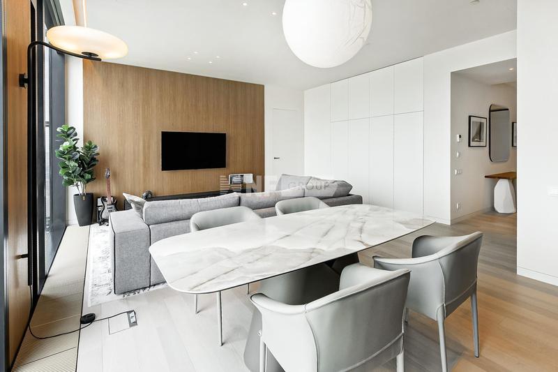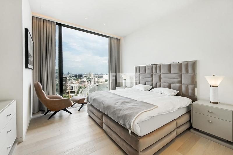 В продаже видовая квартира с новой отделкой в башне River жилого комплекса Capital Towers на Краснопресненской набережной. Планировка: гостиная-кухня, мастер-спальня с ванной комнатой, гардеробная. В